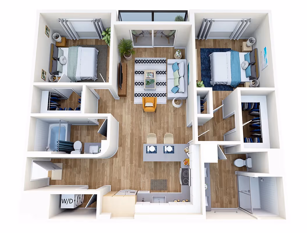 Wood-Style Luxury Plank Flooring Throughout Including Bedrooms